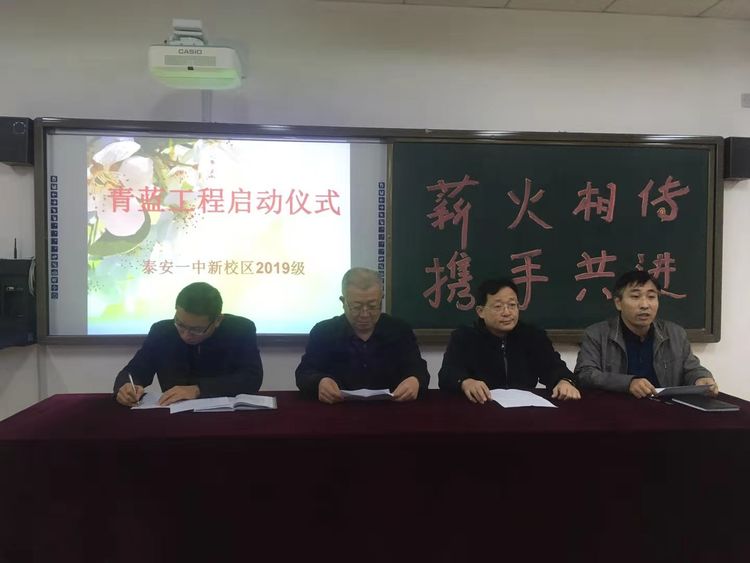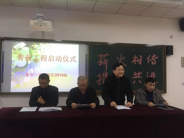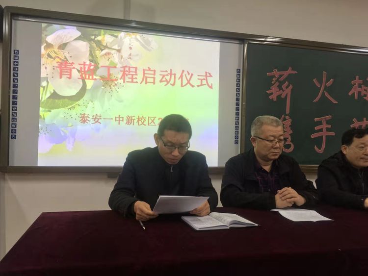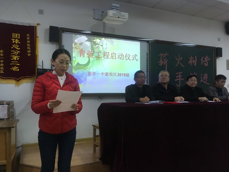本次活动由王玉平老师主持,新校区管委会赵亮副主任、新校区教科室杨洪伟主任、高一年级马启银主任和高一年级全体教师参加了本次活动。 活动先有教科室杨洪伟主任宣读了《2019-2020年度泰安一中新校区青蓝工程实施方案》,明确了青蓝工程领导小组成员、师徒职责、管理与考核制度、奖惩制度等具体内容。