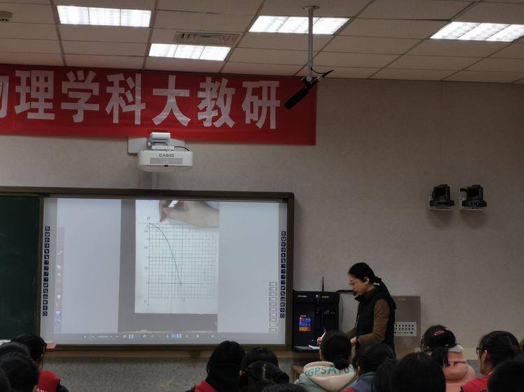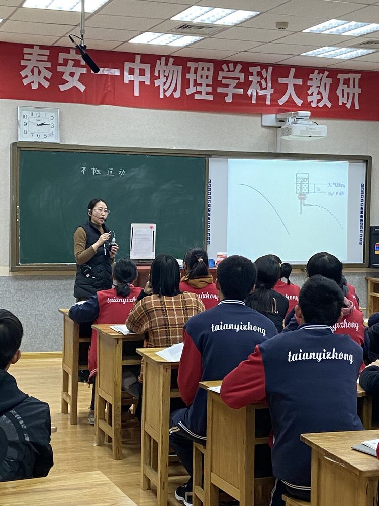 首先,2019级物理组王田田老师作为青年教师代表讲授示范课《平抛运动》。物理组全体成员观摩学习。