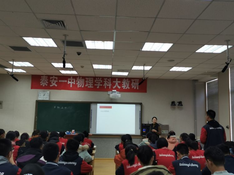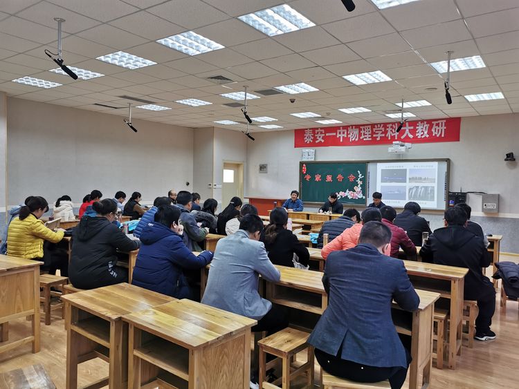 2019年12月4号,泰安一中物理大教研活动在泰安一中新校区举行,由学校物理教研室主任罗凯主持本次教研活动,三个校区的物理教师全员参加。教研室主任兼书记董茂寅,教研室教研员王晓辉莅临指导工作。本次活动立足于新高考就如何实现新形势下课堂高效教学进行了交流与讨论。