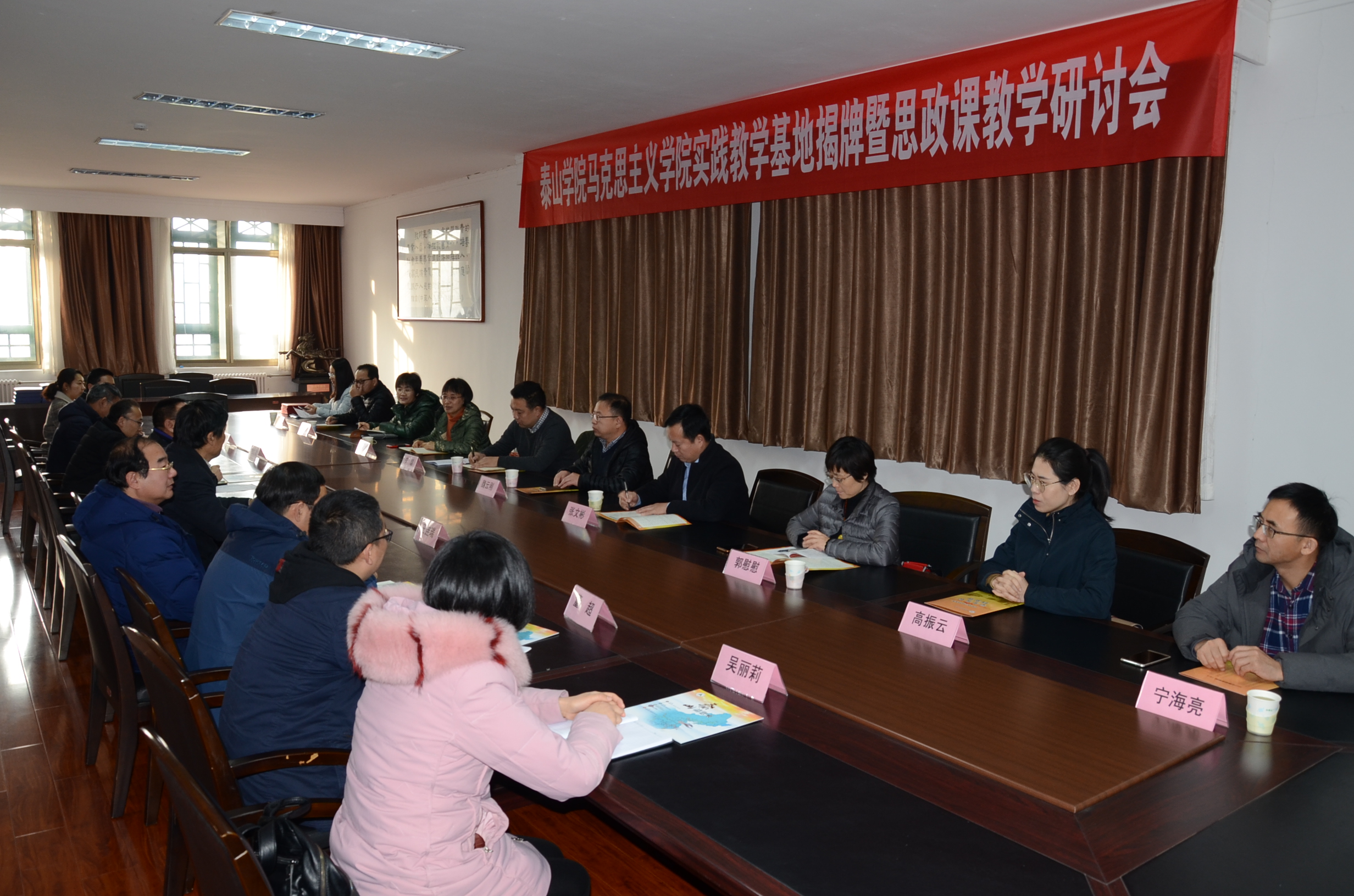 1月3日,泰山学院马克思主义学院党总支书记张文彬一行10人到我校就实践教学工作进行调研,并举行教学实践基地签约仪式。泰安一中党委书记李万国、副书记靳启华,教务处主任王连瑞,出席签约仪式,学校思想政治课教研主任刘元国和三个校区的备课组长参加仪式,并与泰山学院与会领导和专家进行座谈。 会上,泰山学院教务处副处长魏云刚介绍了泰山学院办学条件、特色、师资和专业设置等情况。马克思主义学院党总支书记张文彬就合作协议的内容形式进行了介绍和说明。他们希望,双方以此为契机,努力开创合作办学新局面。 李万国书记首先对泰山学院送学、送教上门深表感谢,他介绍了泰安一中悠久的办学历史、显著的办学特色和优异的办学成绩。他说,泰安一中近几年在高考成绩、自主招生、学科竞赛等方面一直走在全省、全国前列,2019年高考再创佳绩。他表示,希望通过双方的交流与合作,一起为实现发展共赢奠定坚实基础。 签约仪式结束后,泰山学院向我校7位思想政治教研组组长颁发聘书。马克思主义学院副院长李聪带领到会的专家教授与我校参会的思想政治课教研组长就合作内容形式进行了详细具体的交流探讨。(办公室)