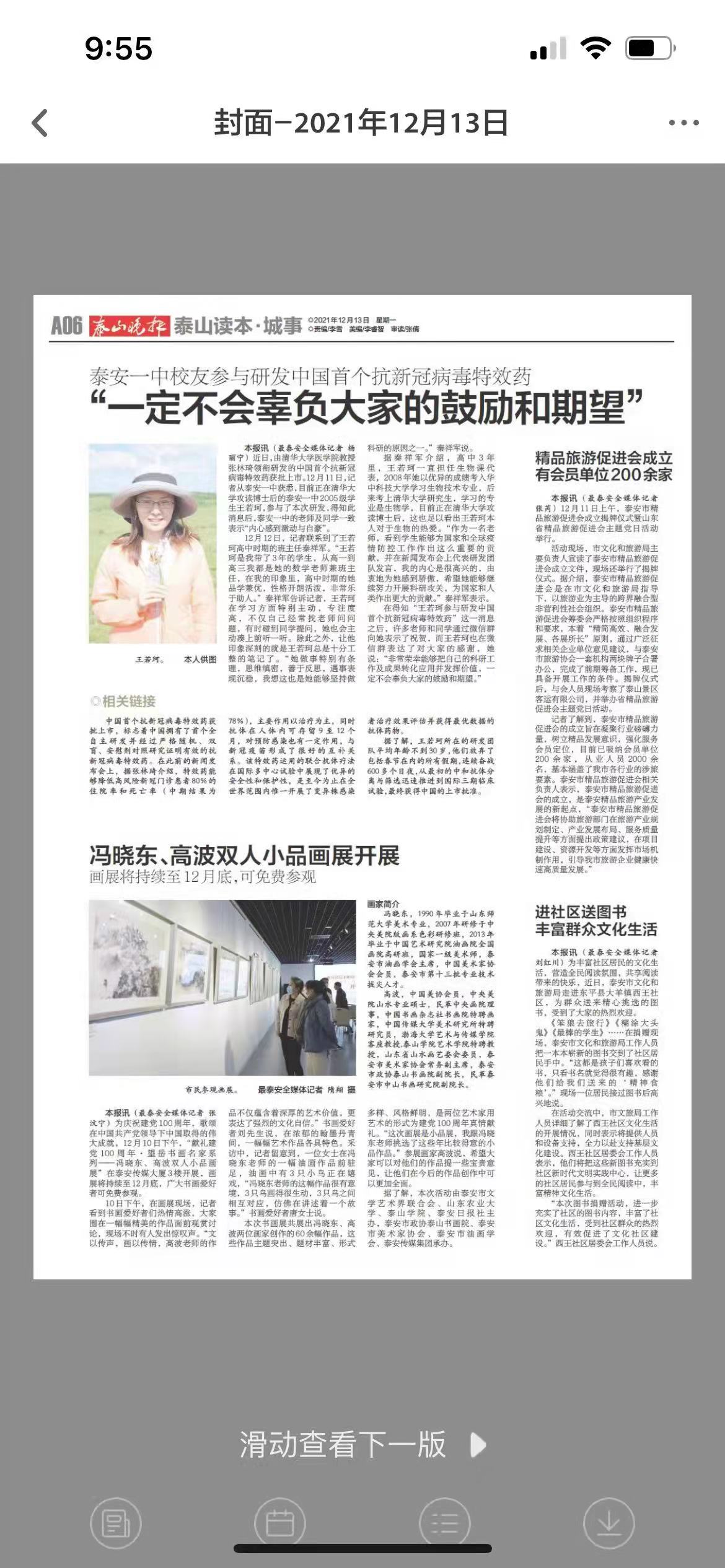 泰山晚报:泰安一中校友参与研发中国首个抗新冠病毒特效药 母校师生