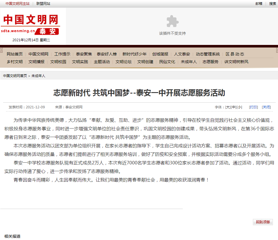 文明网:志愿新时代 共筑中国梦--泰安一中开展志愿服务活动