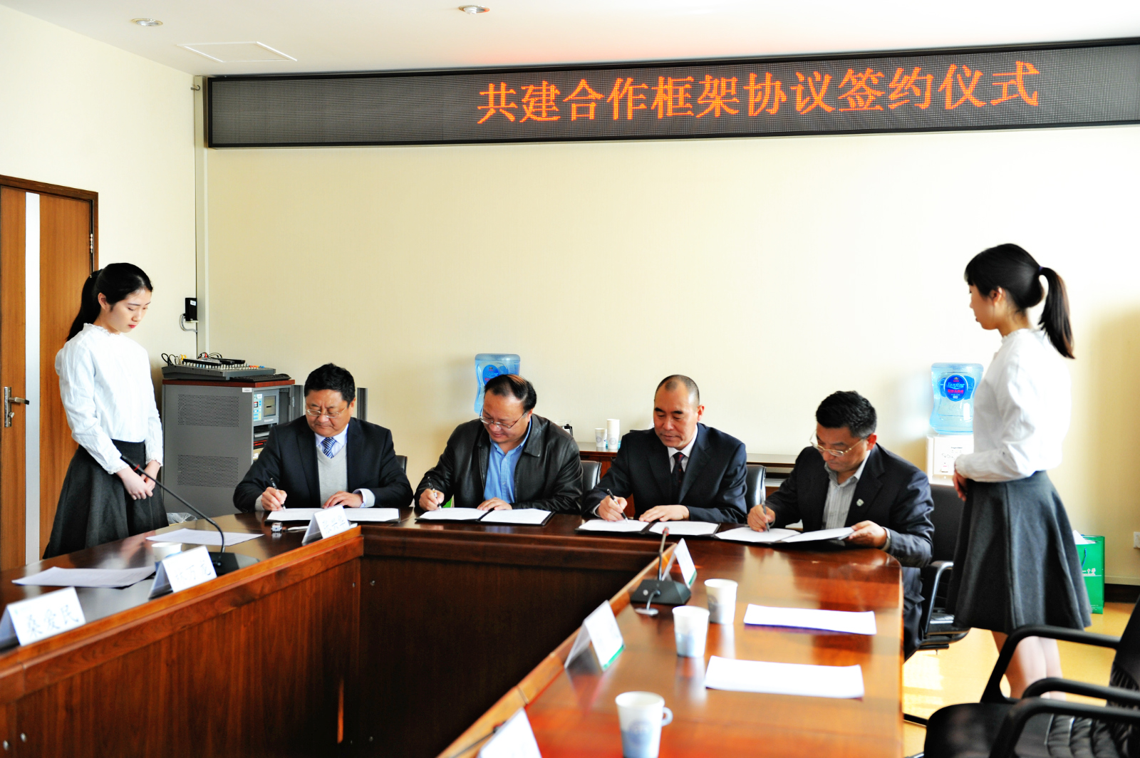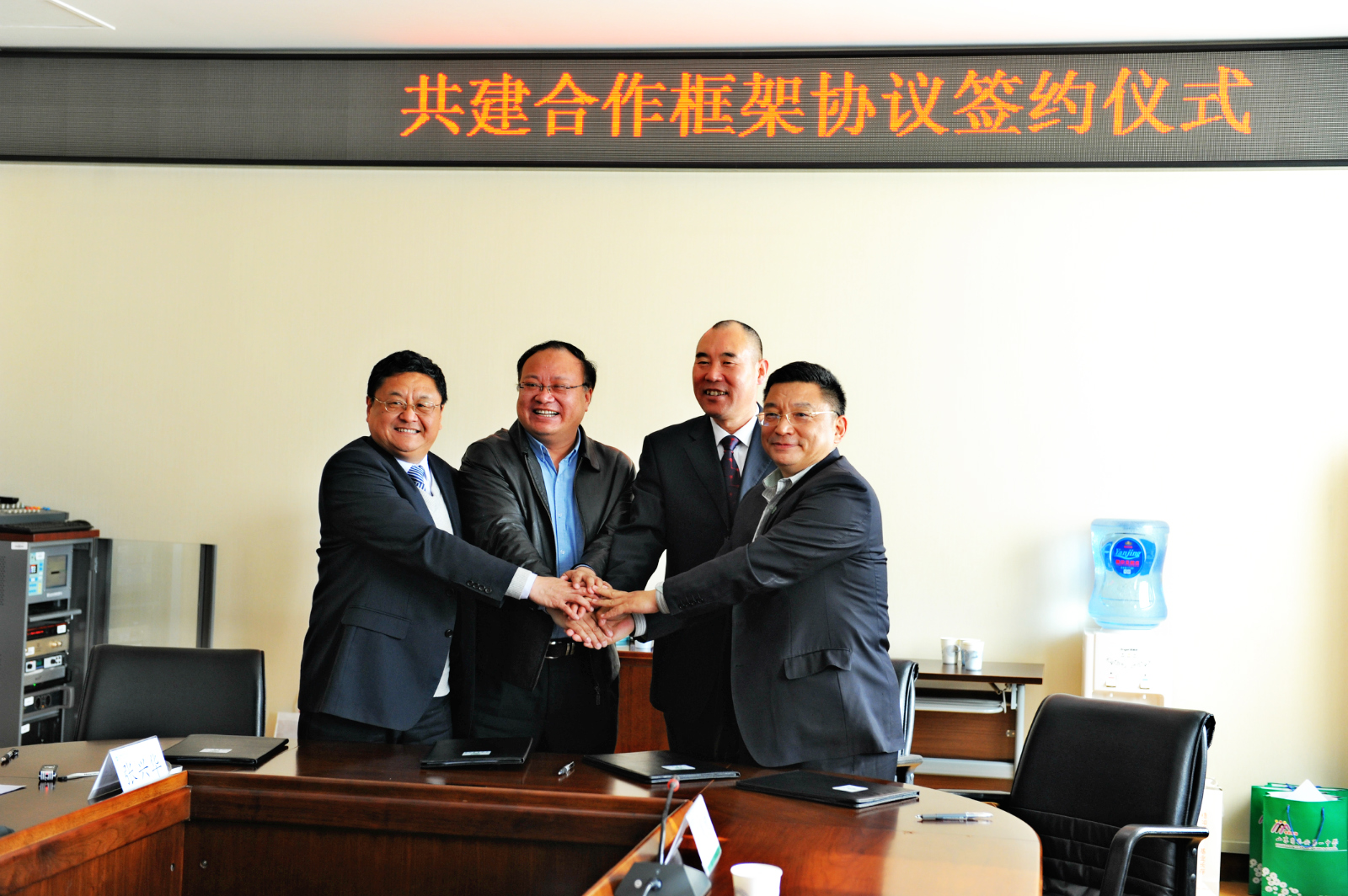 3月24日下午,中国农业大学、北京农业大学附属中学、山东省泰安第一中学、山东省泰山学院附属中学四校共建合作框架协议签约仪式在中国农业大学隆重举行。签约仪式由中国农大教务处处长林万龙主持,北京农大附中王军校长、 我校桑爱民校长、泰山学院附中秦洁新校长、中国农大王涛副校长、北京市海淀区教委基教科赵霞科长分别致辞,高度评价了四校合作的深远意义并对未来建设充满信心。