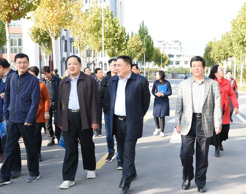 10月30日下午,泰安市教育局副调研员强光峰陪同市委党校2018年第三期县级领导干部进修班50余名学员,到泰安一中新校区参观调研。泰安一中校长常希贞欢迎并陪同活动。 各位领导自南大门东门进校后,下车步行参观校园,途经科学馆、体育馆、图书馆、三号教学组团、艺术馆、二号教学组团,整体了解校区全貌;驻足西运动场,详细了解学生体育课开设和体育活动开展情况;深入到一号组团的餐厅、学生公寓,仔细查看了学生吃、住、学等条件和设施。 参观过程中,校务委员、新校区管委会副主任赵亮介绍校区建设、招生以及管理运行等情况。各位领导对新校区高端先进的办学环境和科学精细的教学管理,给予充分肯定和高度评价。