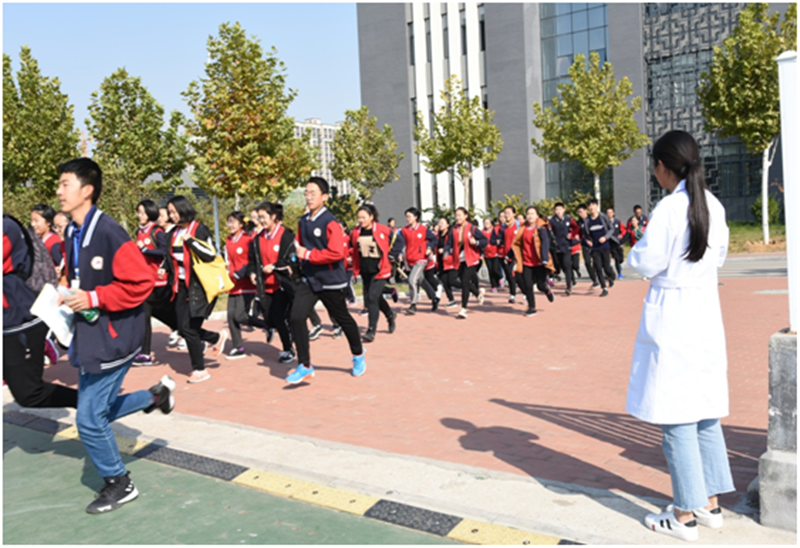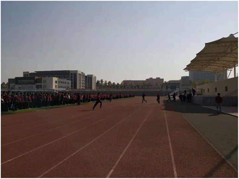 10月31日,消防宣传月到来前夕,泰安一中新校区举行了学生公寓消防安全疏散演练活动。本次演练模拟三、四号学生公寓某处突发火警、火灾紧急情况,进行公寓住宿学生的消防安全疏散演练。整个演练过程紧张有序、实效性强,达到了预期效果。 13:25分,随着火灾警报声响起,值班领导、班主任、宿舍管理人员、保洁人员及医务人员立即到达指定岗位。现场值班人员立即拨打119报警电话,宿舍管理人员迅速打开各疏散通道,各楼层值班人员快速打开消防门并在楼梯口指挥学生疏散,学生沿既定疏散路线迅速有序撤离公寓,到达田径场主席台前集合。随即各班主任清点人数,并向演练总指挥汇报。演练共用时5分15秒,1500余名师生全部安全疏散。 演练结束后,政教处相关老师向师生讲解了灭火器使用方法及注意事项,消防安保人员现场进行了灭火器使用操作演示。 最后,校区政教处相关老师对此次安全疏散演练进行了简要总结,向学生讲解了安全防护自救知识,强调了疏散过程中应该注意的问题,要求全体同学提高思想认识,及时发现安全隐患,确保校园安全与个人安全,共同打造平安、文明、和谐校园。