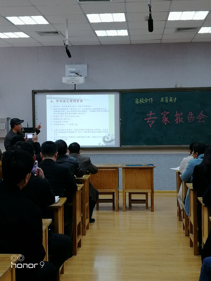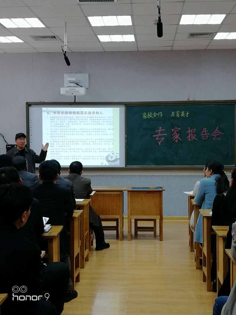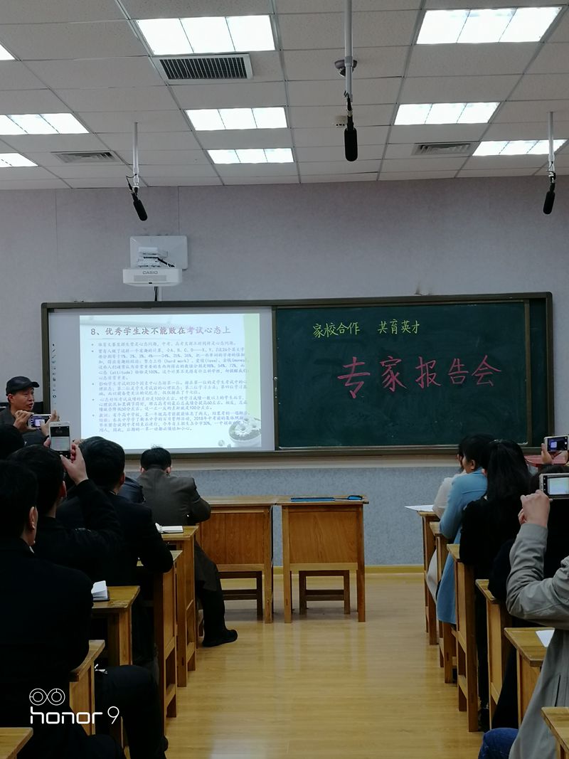 11月17日,泰安一中邀请山东省家庭教育指导委员会委员、山东省家庭教育公益讲师团成员阚兆成,对新校区高一家长和青年路校区高一、高二家长进行了全员培训,旨在用家庭教育新动能激发学校发展新活力,实现教育质量的稳步提升,助推尖子生培养实现新突破。 学校认识到,新时代学校教育更加离不开家长的支持与参与,越是优秀学生越应该注重发挥家庭教育的互补作用,学校、家庭两个单力形成合力学生发展的能量才能倍增,家庭教育在时间掌控、做题规范、学习态度、学习兴趣、心态培养等潜能为每个学生在高考中平均多得20至30分,学校的教学质量将实现新的跨越。 基于这一思考,学校安排了本次家长培训。新校区采用班班通直播方式对高一家长进行培训,老校区通过校园广播对高一高二家长进行培训。 讲座从七个方面进行了讲解,一是我们应该怎么看泰安一中,二是家庭教育的任务地位作用,三是家庭教育理念需正确理解,四是家庭教育常识要了解掌握,五是高中家长必须面对的问题,六是家庭教育要跟的上新时代,七是家长好好学习孩子天天向上。 讲座重点结合泰安一中的实际,针对高一新生心态调整、新校区住宿生家长不放手等具体问题进行了阐述。 泰安一中的学生在初中几乎个个优秀,是班里甚至学校的佼佼者。然而,不少在初中阶段非常优秀的学生升入一中后,成了班里30名、40名,产生了很大心理落差,信心受到动摇,甚至有的学生一蹶不振,家长也开始不淡定。他认为,第一,中考优秀高一不一定就优秀。中考优秀被重点高中录取,在重点高中强强相遇要重新进行排名,成了班里30名、40名甚至倒数第一名很正常,也许倒数第一名也不差。要建立自信,学会科学的自我定位,在一中一千名左右还能考重点大学,在一般学校即使班里第一也考不上重点大学。因此,没有理由产生很大心理落差,信心受到动摇,甚至一蹶不振。第二,中考成绩不是初中四年的综合表现。很多学生初一到初三都在玩,初四通过一年硬拼,考了个不错的成绩。但是,学习态度、学习习惯、学习方法都是存在问题的,不要认为中考成绩好,这些问题就消失了,高一是这些问题的集中暴露期。要正确认识这个问题,高中第一次期中考试,如果考的不好,应该庆幸这次考试来的很及时,给自己敲响了警钟,让自己认识到了问题的严重性,认识到了强中自有强中手,认识到了谁都不能随随便便成功,认识到了在高中一起应该从零开始。第三,要努力改变学习方法,做好吃苦的充分准备。要变赶着、扶着学为主动学,养成自我安排、主动学习的行为习惯。高中学习任务很重,速度很快,三年课程两年学完,要适应教学上高起点、大坡度、快节奏。他送给家长一句忠言:高一期中考试后,要和孩子一起打败问题;千万不要和问题一起打败孩子!到了高一就忘了中考成绩吧!中考成绩已经过期作废了。家长和学生需要接受新的排名和定位,如果不能接受就去通过努力改变吧! 新校区学生基本上都住校,不少家长依然不放手,隔三差五到学校看孩子,这在很大程度上是帮倒忙,衡水中学为啥好?学生在校期间家长一律不能到校看望或送物。不放手就是不放心,不放心就是没底气和自信,就是对学校的不信任,这种行为会给学生造成很大依赖和被动,真的是好心办坏事。 高一新生一定要准备好吃苦。高一是道“坎儿”,高二是个“坡儿”,高三是座“山峰”。高中学习任务很重,速度很快,高中学习方法学习习惯的培养在高一,高一落后的孩子在学习技术学习技能上就基本上输了。高一所学内容绝不是高中的三分之一,至少是二分之一,因为高二暑假前一个月新课都可以结束了,高三全年用来复习。要适应教学上高起点、大坡度、快节奏。 学好语文特别重要,高考3+3,真正的竞争在语文,得语文者得高考。2019年高考被称为“最难语文年”,语文教材总主编温儒敏先生说:从2018年开始,语文试卷每年增加1000字,从7000字增加到12000字,语文考试最后要实现让15%的人做不完!所谓的“难”集中在这3个方面:阅读能力差=做不完;不读名著=不会做;不积累古诗文=一流变二流。之所以高考语文变难了,因为它不再只考课本和文学常识,而是在考学生的阅读量和阅读能力!所以,增加课外阅读才是解决问题的方法。语文为王的时代已经到来!不读名著行不通!不读古文行不通!轻视语文更行不通! 泰安一中这么多优秀学生,光学校努力是不行的,必须有家长的自觉自愿的深度参与,要实现学校家庭双轮驱动。有些学生优秀主要因素是聪明,但缺乏的是认真、坚持、规范、心态等重要品质,这些非智力因素在关键时候会使孩子成绩大打折扣。许多学生家长认为孩子优秀,就疏于和老师的沟通,形不成教育的合力。家长一定要清楚,有关统计研究表明,做题不规范考生平均每学科要丢5—8分;心态好坏对考试成绩的影响是正负60分左右,这一正一反的差距就是100分左右。由于非智力因素所失的分主要责任在家庭,次要责任在学校,这正是抓家庭教育的深层动因。心态是什么?平时不觉一个小时时间长,但等车等人就觉得很长,这就是心态。平时心态可以,高考就不一定行,这要通过训练。 家校正常沟通非常重要。2017泰安理科状元肥城泰西中学李鸿宇,高三一模差点崩溃了,准备放弃高考,是良好沟通的班主任和家长帮他走出了困境。李鸿宇妈妈一个月左右就与老师们