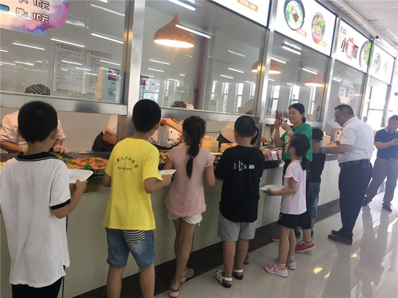 午饭时间,新校区餐厅为小记者准备了丰盛的午餐。看到色香味俱全的美食,小记者们特别兴奋,并在餐厅工作人员的帮助下有序选取自己喜欢吃的饭菜,他们一边吃饭一边由衷地赞叹:“一中的饭菜真好吃!”