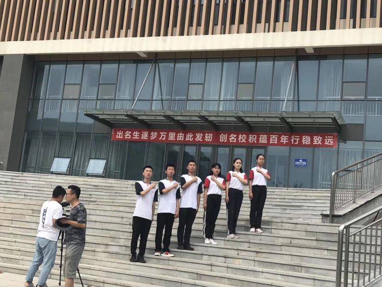 为响应习近平总书记的号召,弘扬新时代泰山“挑山工”精神,庆祝新中国成立 70 周年,市教育局、市委组织部组织拍摄《致泰山挑山工》大型情境诗朗诵短视频。2019年6月15日(周六)上午,我校师生共计200余人参加了此次拍摄活动。