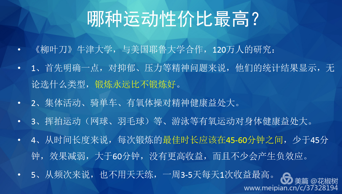 运动疗法——运动是上天赐予人类的一剂良药,和药物相比,有着无副作用的强大优势。通过运动,改变大脑、改善情绪的同时还可以锻炼身体,可谓一举两得。孔主任也就此给大家提出了运动的建议: