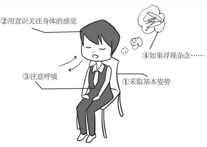 正念呼吸——孔主任耐心地引导大家去感受、观察自己的呼吸,静静地体会内心的情绪感受,“吸气的时候知道自己在吸气”“呼气的时候知道自己在呼气”。通过这个小活动启发同学们不要总是关注过去和未来,而要关注现在。