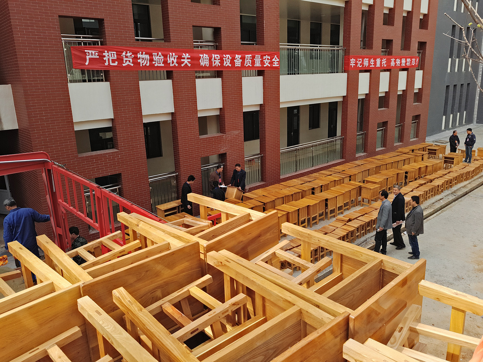 4月10日上午9点泰安一中新校区第一批设备:课桌凳正式进货安装,设备质量问题历来是领导高度重视、群众高度关心、社会高度关注的问题。为确保家长学生非常关心的设备质量问题,学校采取了6项措施: