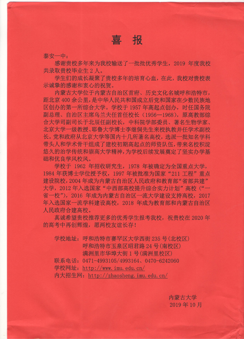 内蒙古大学喜报