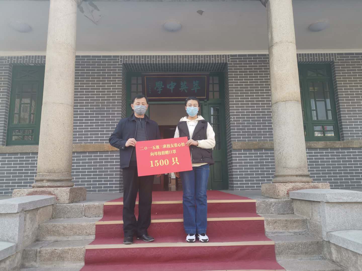 泰安一中2015级3班校友张心怡向母校捐赠防疫物品 |
