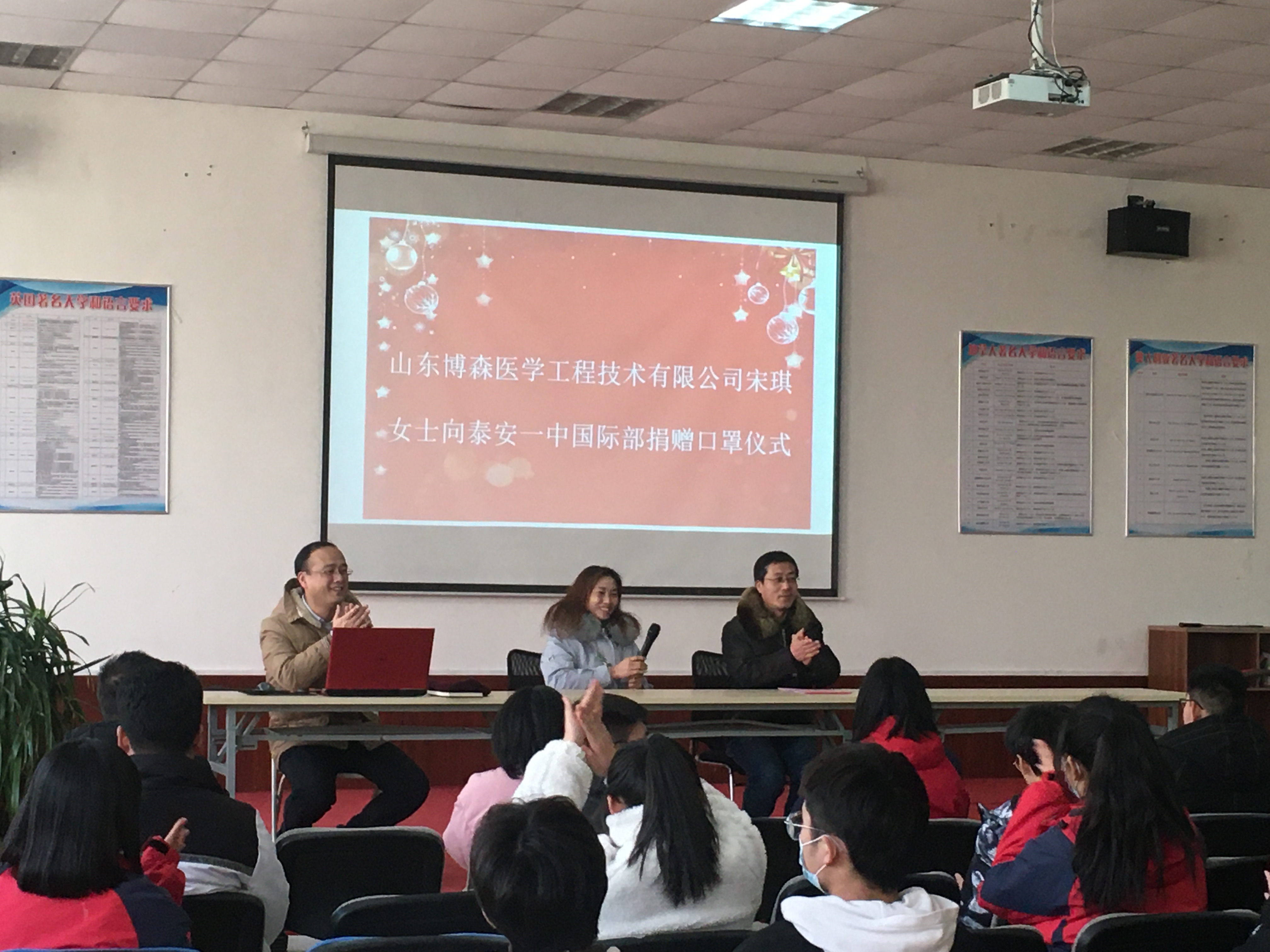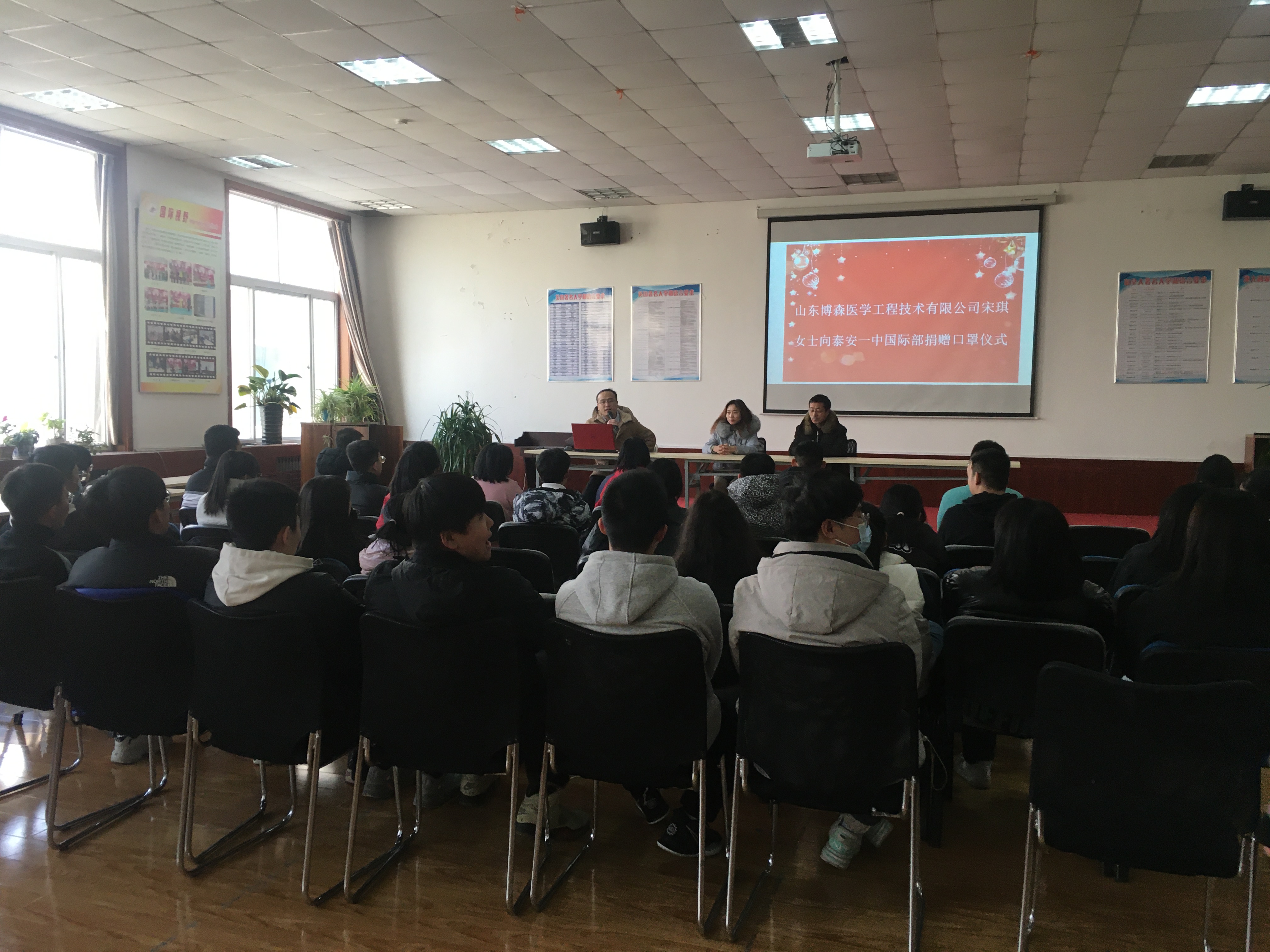 2021年1月18日国际部2020级学生刘凌初家长,山东博森医学工程技术有限公司董事长宋琪女士为国际部师生捐赠了2000只价值不菲的医用N95口罩。国际部在多功能厅举行了简短的交接仪式,同时也让国际部全体同学参加了该仪式,借此机会接受感恩教育。 宋总的爱心之举是企业家社会责任感和担当精神的具体体现,为同学们树立了极好的榜样,也为国际部师生上了一堂生动的感恩和爱心教育课。 ![]() ![]() ![]() ![]()