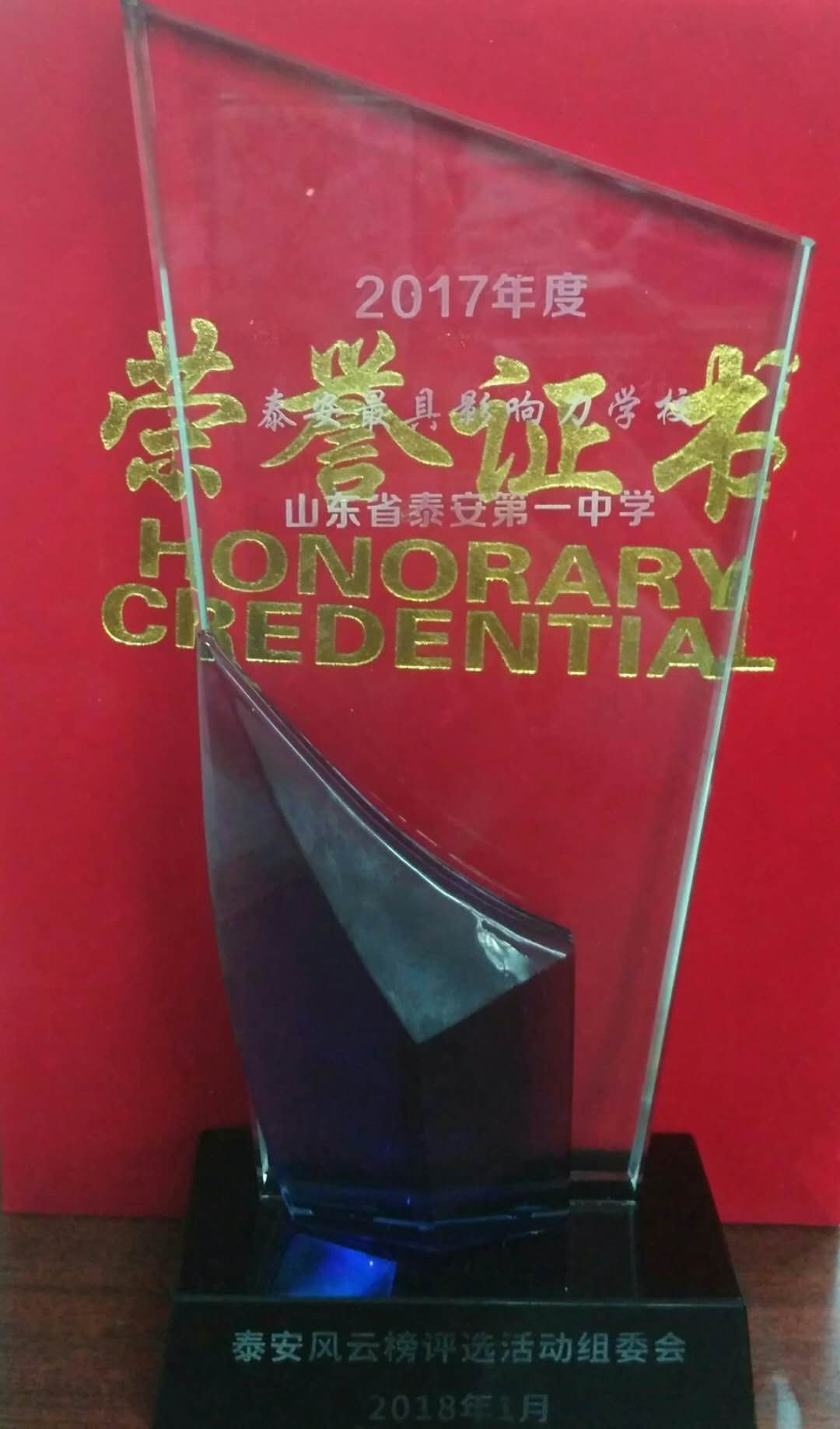 泰安一中荣获2017年度泰安最具影响力学校 |