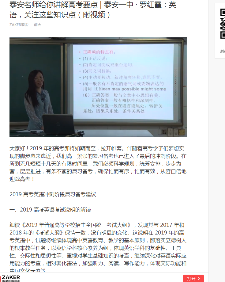 ZAKER泰安:泰安名师给你讲解高考要点 | 泰安一中 · 罗红霞:英语,关注这些知识点(附视频)