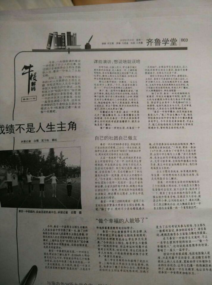 齐鲁晚报:牛校解码 泰安一中 |
